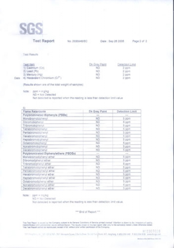 SGS REPORT ABOUT APOLLO & COATS INKS