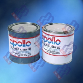 Two pack inks, excellent adhesion and chemical resistance, air dried or heat cured, a matt or full gloss finish may be obtained.