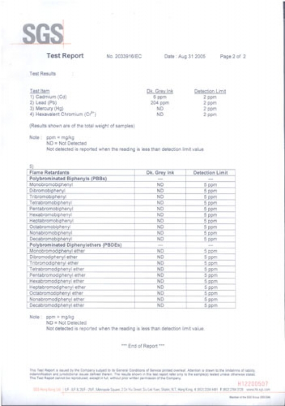 阿波罗及高氏油墨 SGS 测试报告